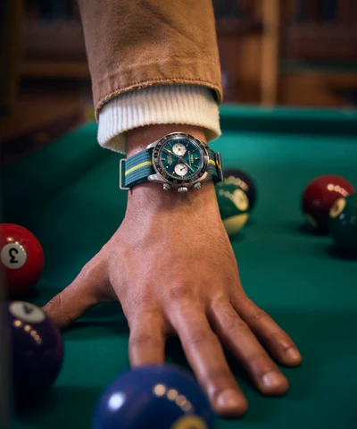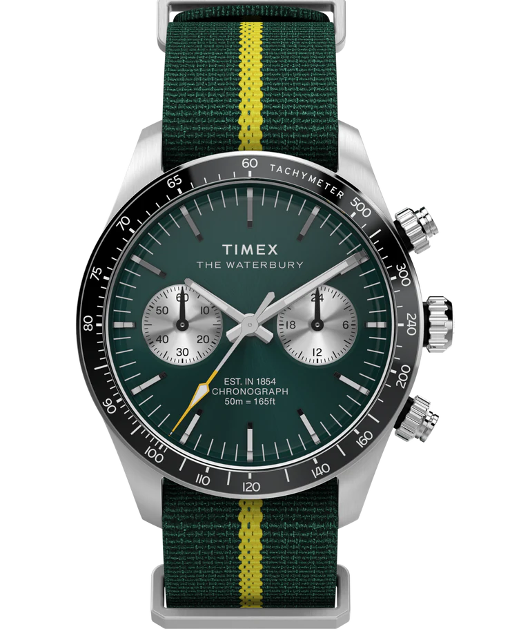 The Waterbury Heritage brings old-world charm to the modern age with classic design elements reimagined through a contemporary lens. Presenting a refined aesthetic with a next-gen edge, it offers a chronograph for tracking elapsed time and a tachymeter bezel for determining average speed. It's a nod to an era when a watch wasn’t just an accessory, but a trusted tool for those who lived by their own clock.