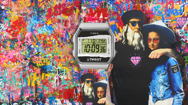 At the heart of each watch is TVBOY’s bold reinterpretation of Leonardo da Vinci and Mona Lisa, plastered across our Timex Legacy Ocean and Digital T80. Titled “Leo & Lisa,” the piece remixes Italian Renaissance romance with loud color, spray-painted elements, and TVBOY’s signature grit, reframing classic love for a modern world.
